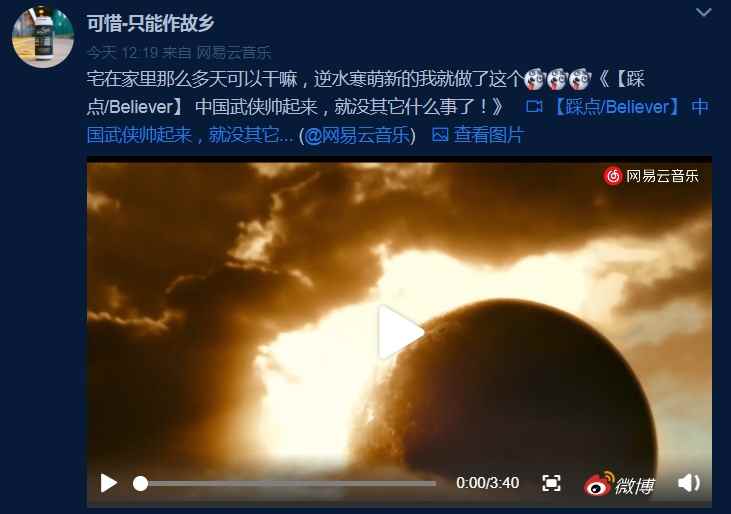 这名小哥哥表示,自己玩过多款武侠游戏,也剪过很多混剪,但逆水寒的画面效果是所有游戏里面最好的,很好展现他心目中独特的武侠世界。