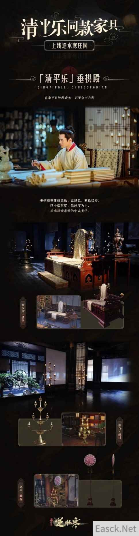 而如今,《逆水寒》和《清平乐》一同联动制作了一批大宋皇宫原版物件、家具。