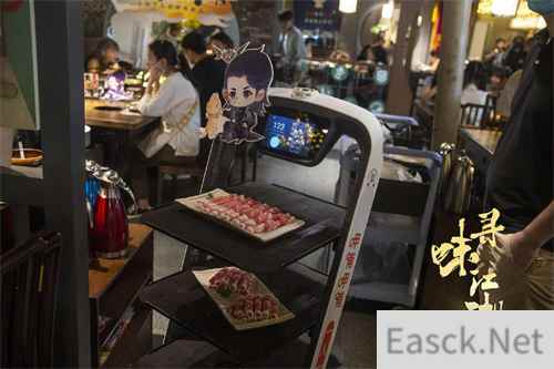 在《逆水寒》主题的火锅店中,以往的服务员们都不见了,取而代之的则是穿着刚上线的新流派玄机服装的“小二”,在人群中为顾客端茶送水,盘盘美食源源不断的送往顾客的餐桌上。