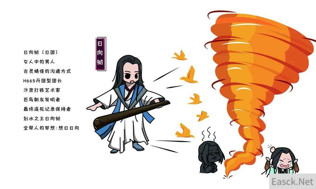 比如论战江湖0-4战绩创造者、整天说“大悲咒在网易云都要VIP......是我不配被超度”之类奇奇怪怪话的拾光女怪人日向彻;