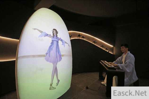 比如“丝”韵舞动互动,游客只需按下电子琴琴键,茧型装置上的“素问”瞬间翩翩起舞,动作会随着弹奏者给出的旋律和节奏变化,AI素问小姐姐的舞蹈有着跨时空合作的惊艳感;