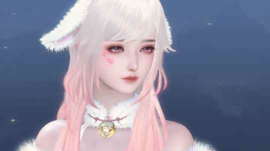 确实,纯白似雪的白团子搭配浅粉色的布料,俏皮的铃铛随着步伐发出清脆的响声,再加上呆萌的双耳,简直是可爱与萌的猫娘的代名词。