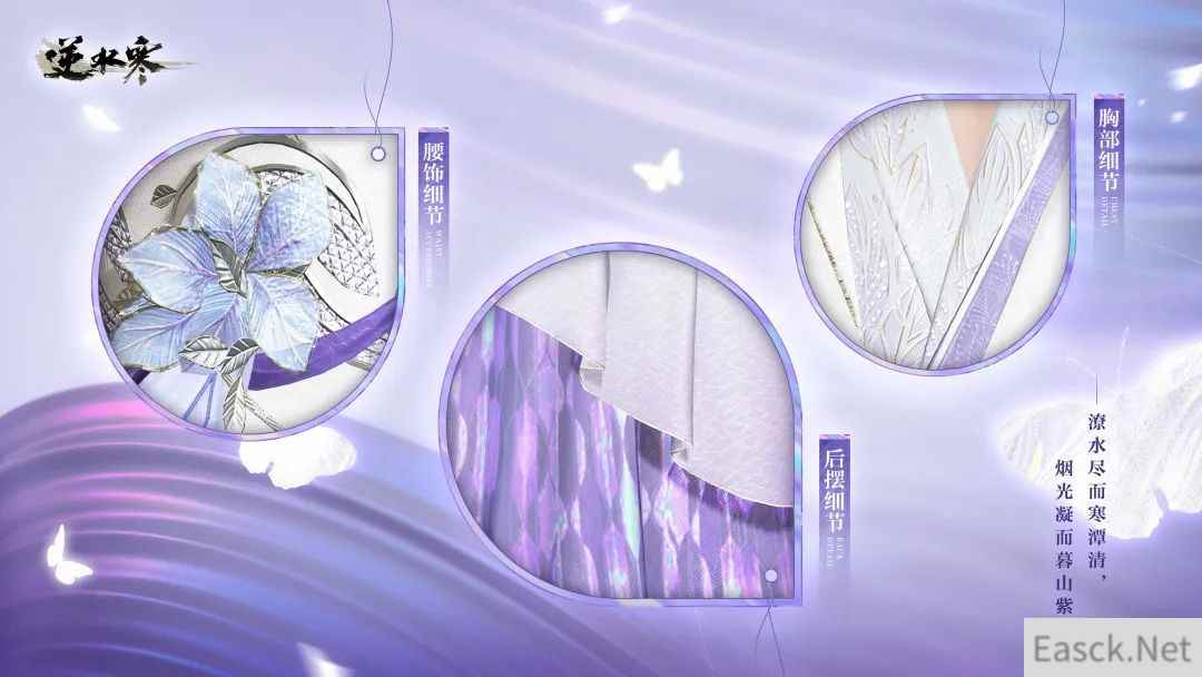 此外,美工组在服装细节上也加入了很多如缂丝、绒面绣、苏绣、草木染、蜀锦等复杂工艺,这些时装更像是《逆水寒》给玩家带来的一场具有中国传统文化气息的盛装盛宴。