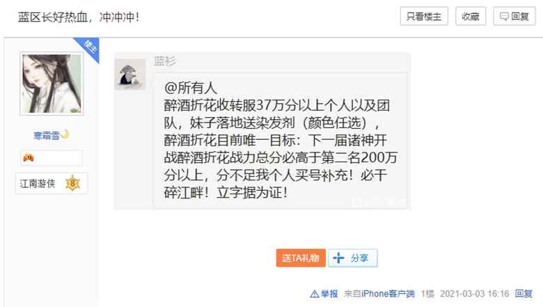 为了能够战胜对手,一次性拿出上千万人民币补贴团队,这种豪奢的行为,也让《逆水寒》玩家们直接沸腾了。