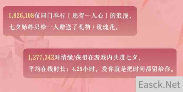近日,逆水寒官方对外公布了一份七夕报告,里面显示七夕当天共有近128万玩家选择在逆水寒和自己的情缘共度七夕,平均相聚时长超过了4小时。 而超过182万玩家选择了忠诚如一的浪漫,他们在整个逆水寒七夕活动期间只给一名玩家赠送了礼物以及玫瑰花。
