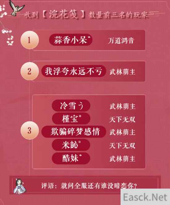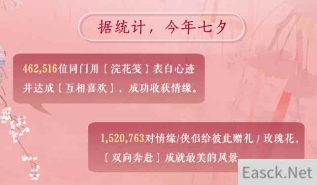 而玩家也没有辜负逆水寒官方的一片好心。 据悉,在整个七夕活动期间,共有46万玩家通过暗恋功能达成相互喜欢状态,并成功收获情缘。