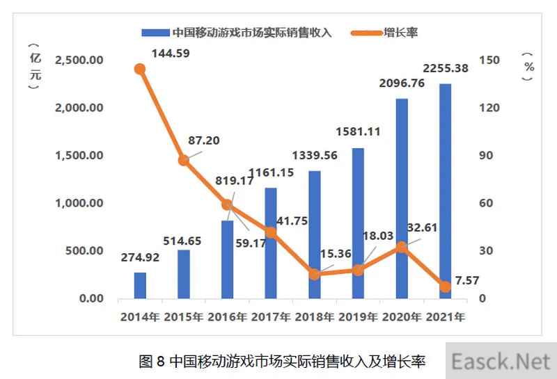 图源:中国游戏产业报告 但是从手游的游戏市场收入份额来看,我们就能明白所谓的“冲击”究竟在何处了。 随着14年智能手机的普及开始,手游的市场收入在八年内翻了近十倍左右,达到了千亿规模的级别。换句话说,在这八年内游戏市场的大部分增量,都被手游给吃下了。