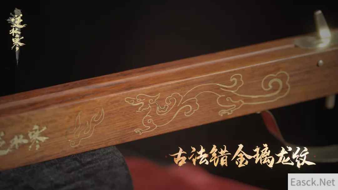 弩身两侧以古法错金银工艺使用千足金对称镶嵌璃龙纹。
