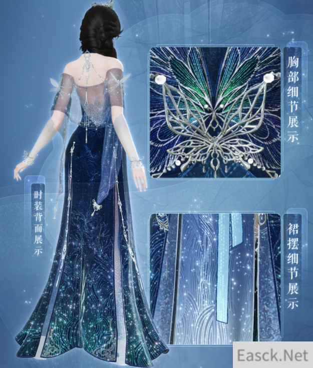 其中女款【寒翼轻华】,以深邃的蓝色女款礼服为主体,炫彩流光的材质、顶级的剪裁,尽显高贵不凡。