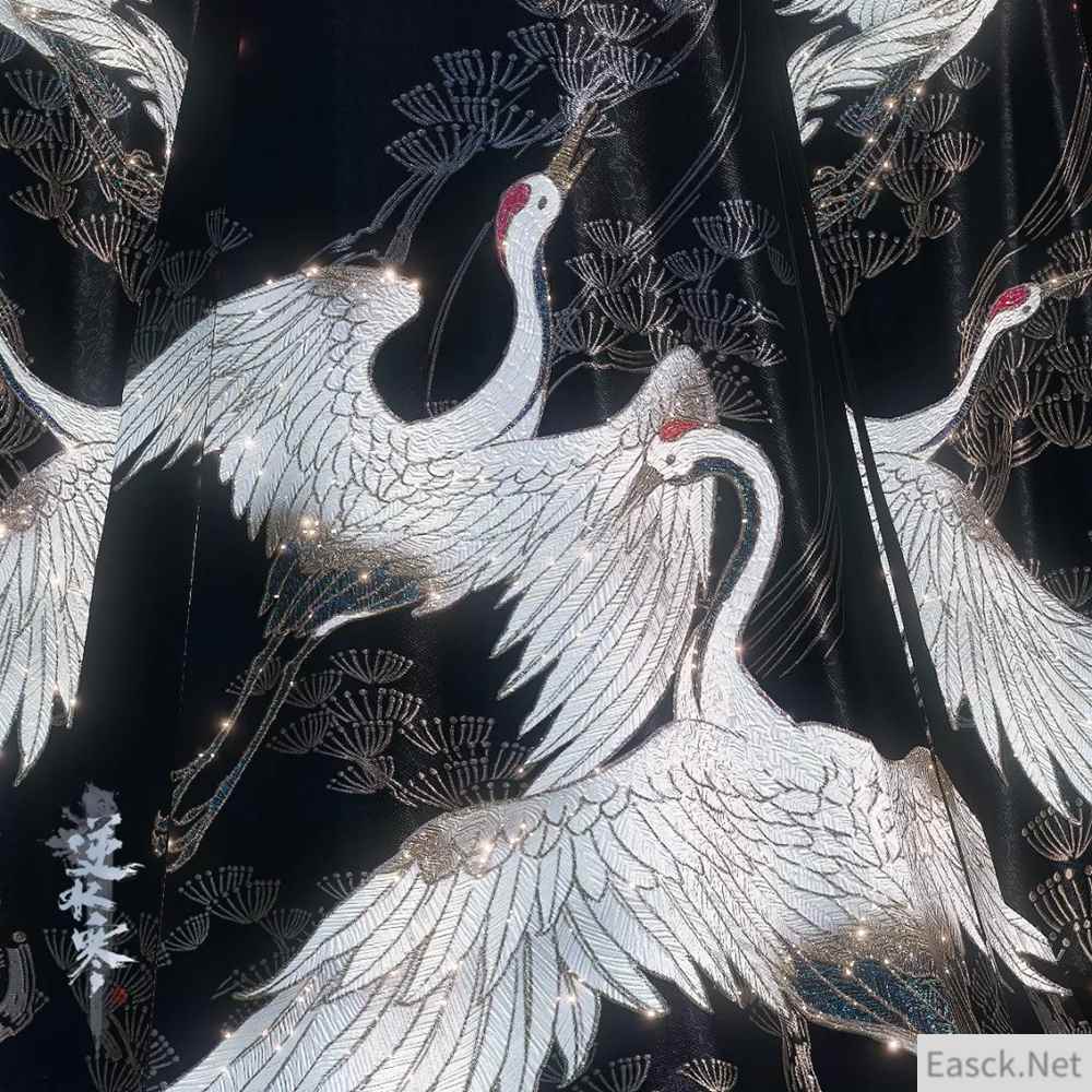 美术组曾以宋徽宗《瑞鹤图》为灵感,制作了一套瑞鹤时装,可以看到大袖子上是一只飞翔的瑞鹤,整体氛围都透露着浓浓的瑞鹤图气息。