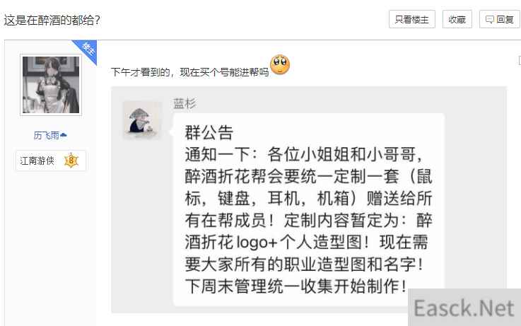 他听从帮会内成员的建议,决定为所有帮众定制一套包含鼠标键盘耳机和电脑机箱在内的高端周边套装当作纪念。