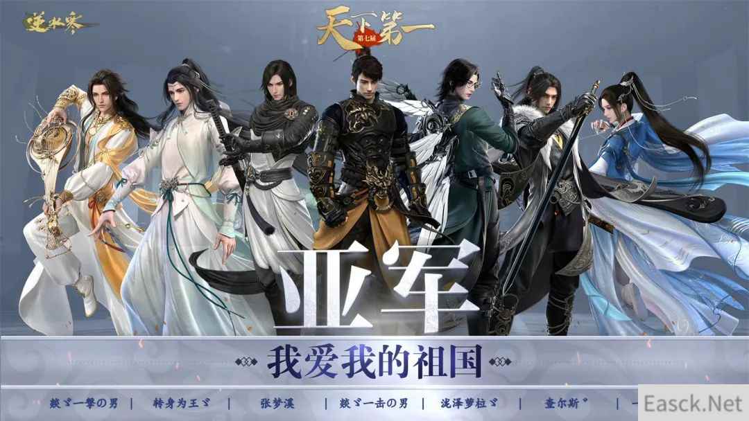 最终击败江山如画服务器【我爱我的祖国】战队的燚ゞ一击の男、查尔斯゛、泷泽萝柆ゞ、转身为王ゞ 、燚ゞ一撃の男、张梦溪、一只小七七゜,夺下本届跨服比武大会的冠军宝座。