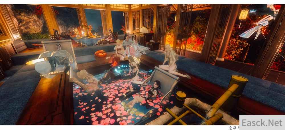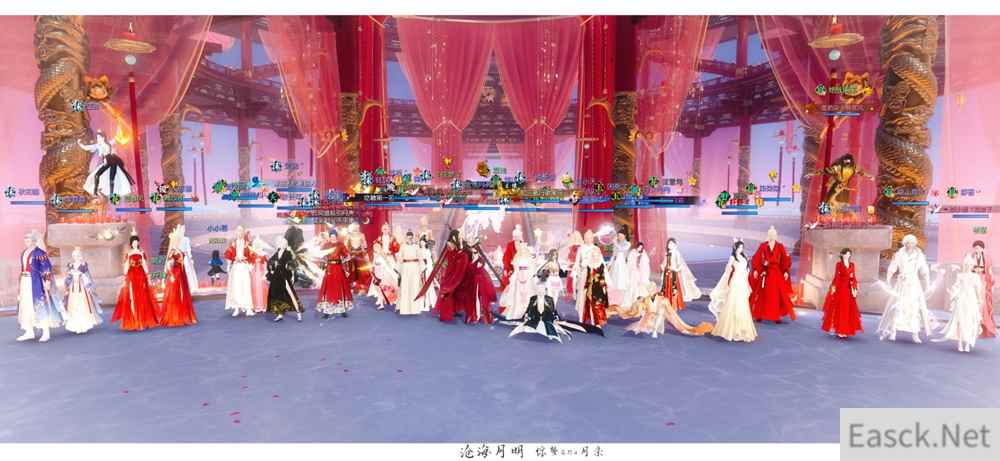 更有意思的是,这位逆水寒沧海月明服务器榜前十的江湖大佬惊梦,为了给自己的情缘亲亲月亮一个惊喜,居然把现实中的婚礼流程100%复刻进了逆水寒游戏中!