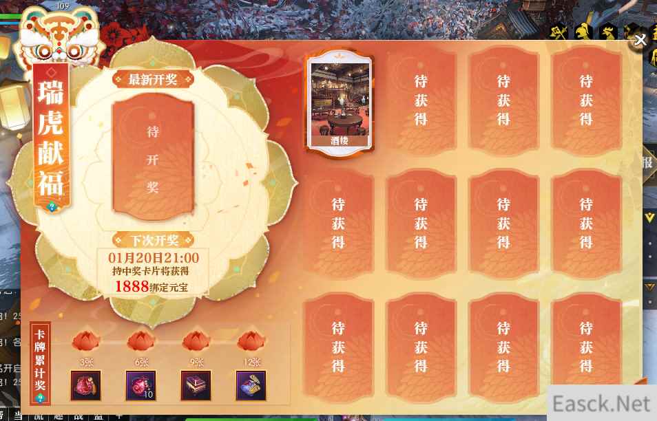不仅如此,在新春活动期间,逆水寒不但不要钱,反倒还给送起了钱,玩家登录即可领取新资料片纪念称号与永久时装,在线登录还能参与名为瑞虎献福的集卡活动,抽取最高1888绑定元宝大奖,回归玩家可以额外获得海量交子、技能交子奖励。