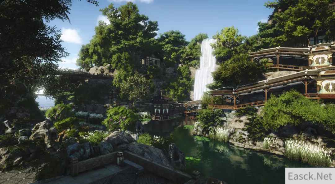 虽然有瀑布的躁动,但置身其中却能静心,静候各位逆水寒玩家过来参观静养。