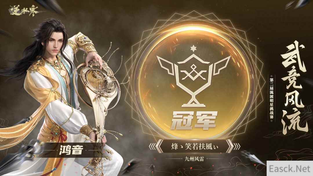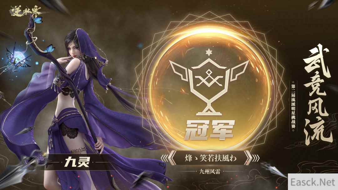 九灵流派冠军由九州风雷服务器的神豪烽ゝ笑若扶風わ夺得,而鸿音流派冠军也由笑若扶风的另一号烽ゝ笑若扶風ぃ,双号同时登顶,笑若扶風也在逆水寒江湖一举创造了历史。