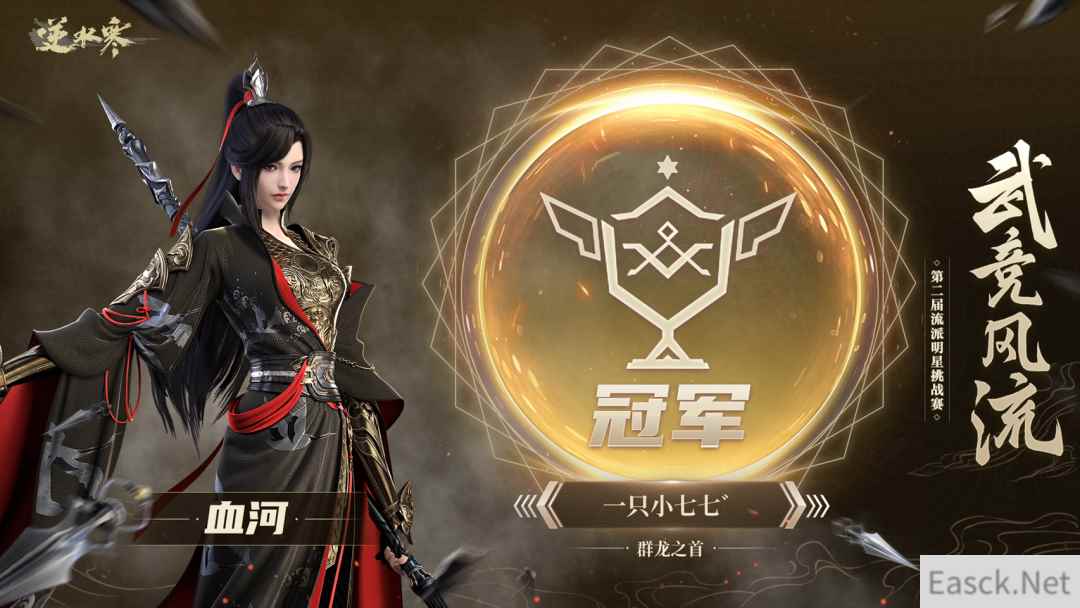 血河流派冠军由群龙之首服务器的一只小七七゛蝉联,一只小七七゛在很长一段时间内被誉为逆水寒最强女玩家,上届流派明星挑战赛,一只小七七゛便通过会心暴击勇夺冠军,成为碧血营使枪第一人。