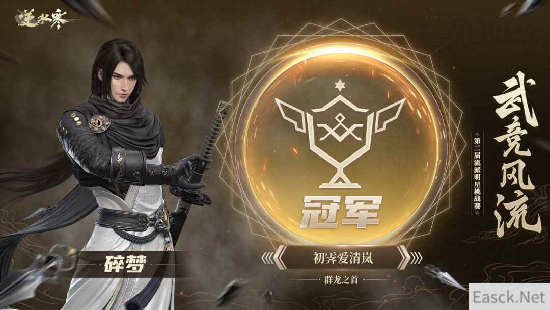 更有意思的是,群龙之首服务器的另一位名为初霁爱清岚的玩家,也顺势夺得了碎梦流派冠军,这对侠侣双双成为江湖最强者,也是一段难得佳话。