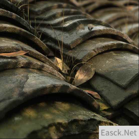 而另一张图片上,瓦制屋檐上的落叶和夹缝中长出的杂草,都在无声诉说着岁月侵蚀的痕迹。也有部分瓦片上隐隐约约长出了青苔。这是不是和我们日常见到的古建筑,十分相似呢?
