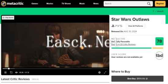 育碧最新开放世界RPG《星球大战:亡命之徒》M站媒体评分现已解禁,本作PS5平台媒体均分78分,目前收录32家评分,25个好评,7个中评。