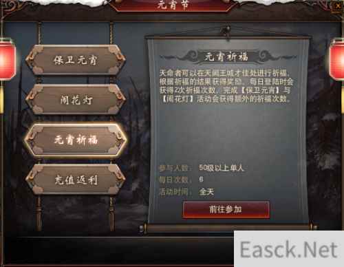 每天祈福,不同奖励拿不停 此外,玩家们还可以参与“元宵祈福”,根据福运收获不同奖励,完成“保卫元宵”与“闹花灯”活动更有额外祈福机会送上!同时“充值返利”也同步开放,更有额外稀有坐骑“鬼蝎”精华送上!