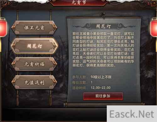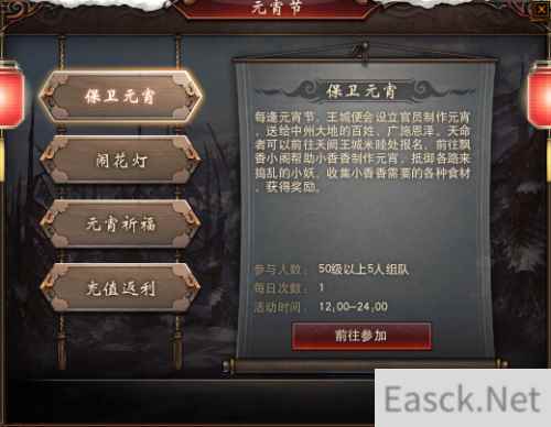 做花灯、猜灯谜,均有好礼带回家 “保卫元宵”活动中,玩家们要收集材料、赶走觊觎美味元宵的馋嘴小妖、偷食小贼和饕餮魔王,收获珍稀奖励、独特称谓等好礼;“闹花灯”活动里,玩家们可以在血海与鬼狱副本中得到灯谜,贴在帮会领地的花灯上,或是猜对其他玩家贴上的灯谜都有丰厚奖励送上,运气好的玩家还能点亮金光闪闪的花灯、获得丰厚大礼!