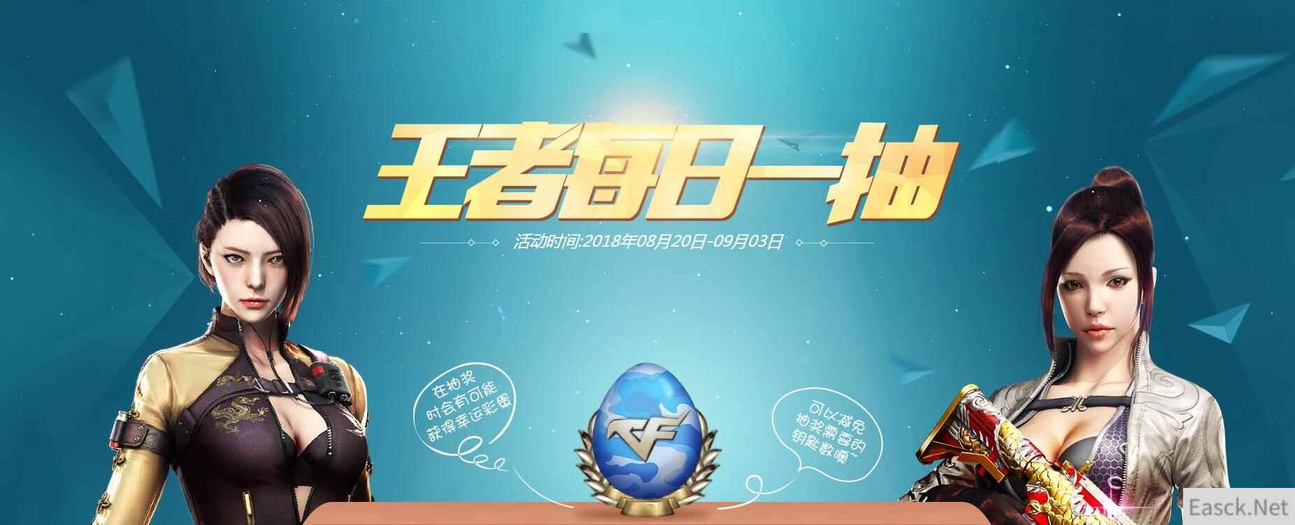 王者每日一抽 活动时间:8月20日-9月3日 活动地址:http://act.daoju.qq.com/act/a20180810lottery/index.htm 一、奖池每日更新 1、10Q币购买复活币1个可获得一个钥匙,100Q币购买复活币10个可获得11个钥匙; 2、每天展示6种奖励,奖励每日零点更新,彩蛋每日清空; 3、已经获得的道具将会从奖池中去除,不会重复获得,每日最多可抽奖6次; 彩蛋:在抽奖时会有可能获得幸运彩蛋,可以减免抽奖需要的钥匙数。