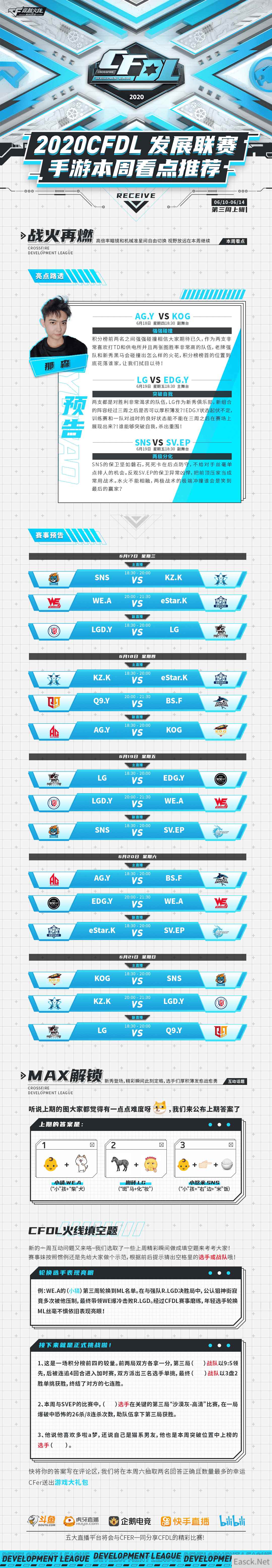 年轻人的世界总是充满着无限的可能。本周三我们将迎来CFDL手游第四周赛事,同样老地方老时间。每周三至周日18:30-21:30,斗鱼、虎牙、企鹅电竞、快手、哔哩哔哩五大直播平台等你观战! 本期赛报除了本周赛事预告之外,赛事妹还特邀请到对赛事颇有见解的解说那森为各路CFer路透第四周精彩赛事。他预测本周四AG.Y vs KOG以及本周五LG vs EDG.Y、SNS vs SV.EP这三场比赛更值得期待! 名嘴在此,速来围观火线全开!年轻选手敢打敢拼,勇往直前,谁也无法笃定下一个神级操作是出自谁手,战场峰回路转,充满无限可能! // 手游本周看点 //