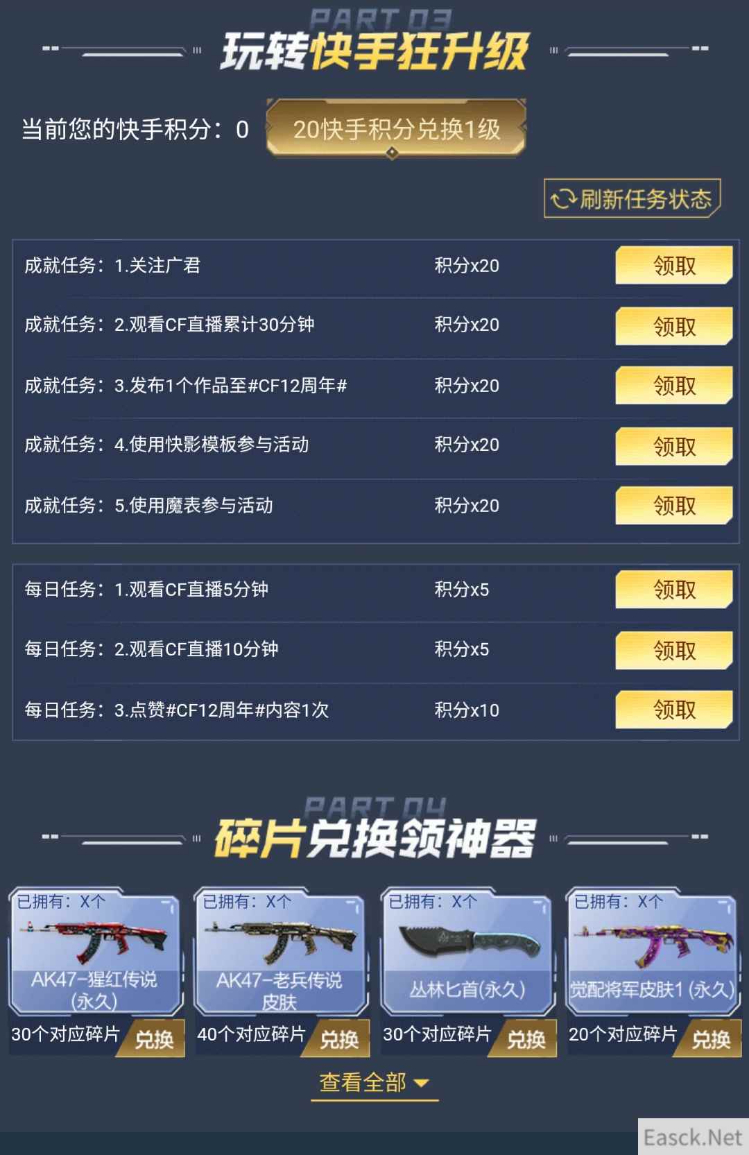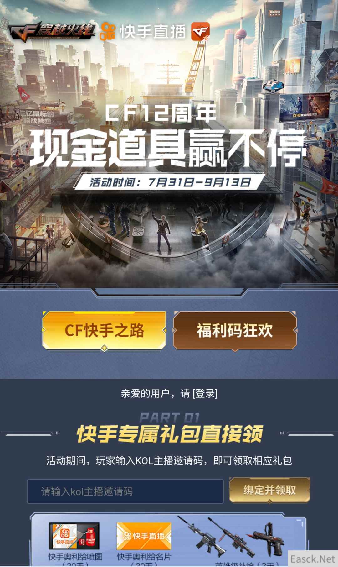 【CF2020年活动大全】 CF快手之路活动 活动时间:7月31日~9月13日 活动网址:点击查看 活动奖励: