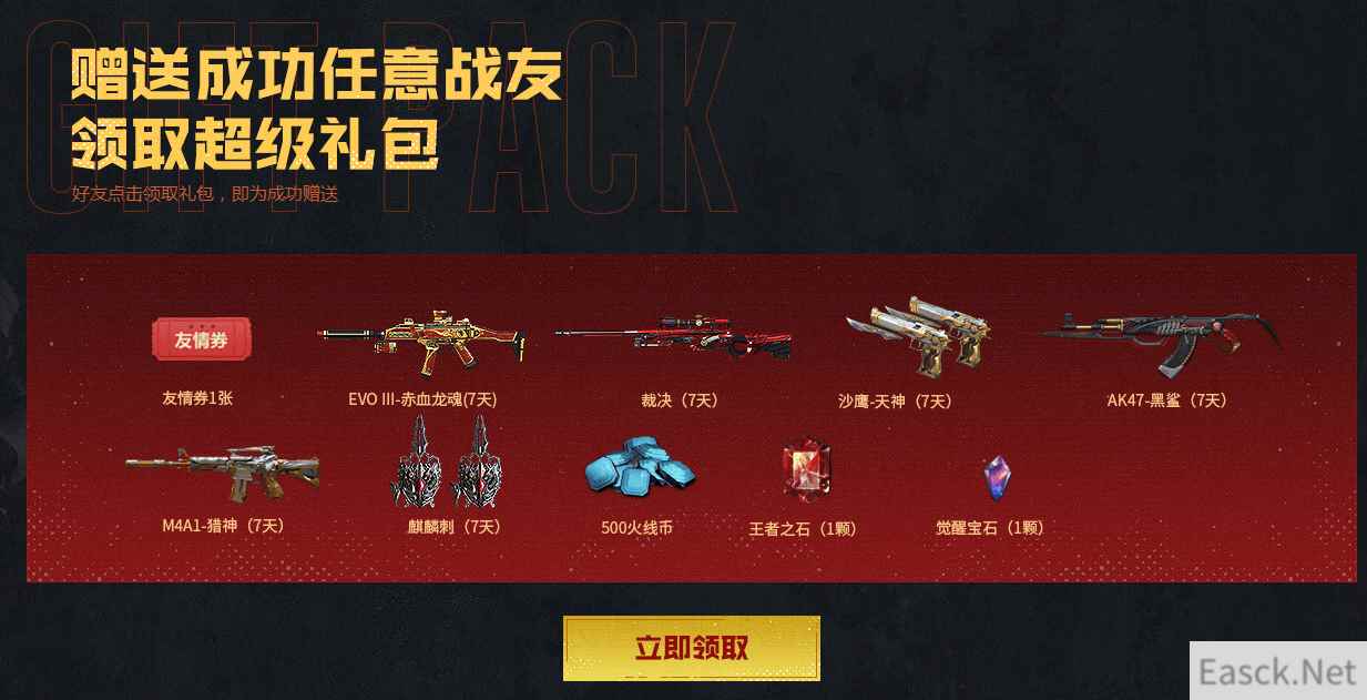 CF10月神器免费领活动已经开启,老兵回归可以领取海量奖励,而且通过友情券也可以兑换额外道具,很多玩家还不清楚活动地址,下面就给大家带来CF10月极品神器免费领活动网址。