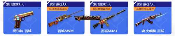 活动期间,玩家任意游戏1局达到累计天数要求即可领取对应武器道具,包括魂·火麒麟-百城、百城M4A1、百城AWM与柯尔特-百城在内的经典武器道具均可免费领取。