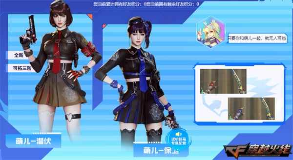 如果CFer在7月期间成功邀请1名指定好友(6.1至今未登录)登录游戏,即可领取获得1积分,邀请1名任意好友登录,既可获得0.2积分,累计1积分即可领取新角色(至少需要邀请1名指定好友),全新可拓三防的专属配音女性角色萌儿等待CFer领取。