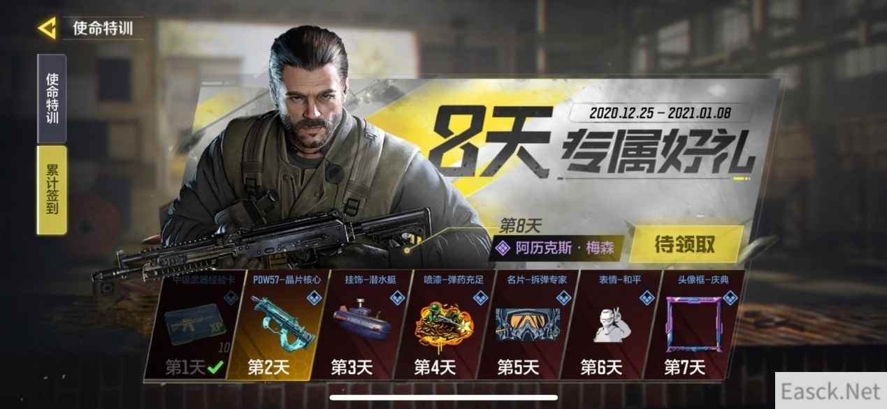福利五:新兵签到 得史诗级角色 游戏开服后,玩家通过登录游戏即可完成新兵签到,连读登录8天即可解锁对应奖励,签到8天可获得史诗级角色——阿历克斯·梅森。