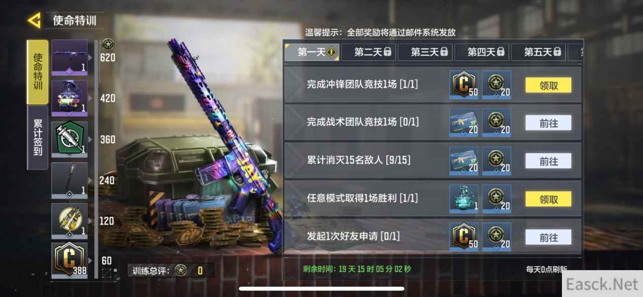 福利四:参与使命特训 得M4-地表最强 活动期间,玩家登录游戏完成每日的使命特训任务,可获取积分,从而解锁奖励进度,获得对应奖励,M4-地表最强等你来领。