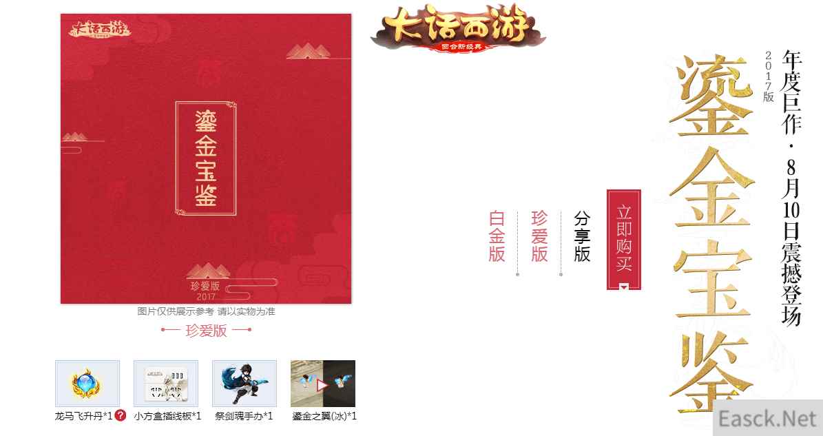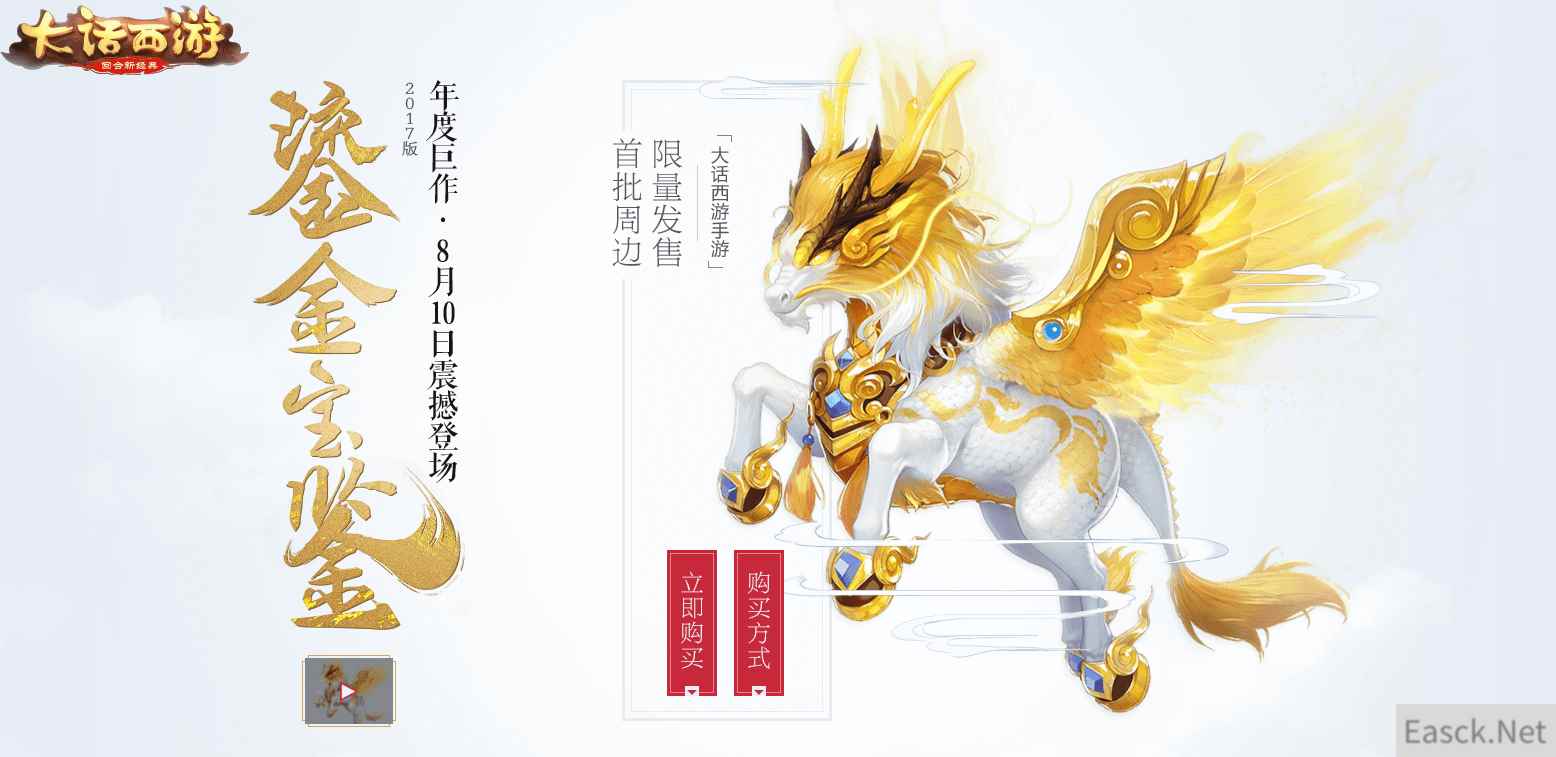 鎏金宝鉴8月10日震撼来袭 酷炫飞升龙马、角色翅膀 大话西游手游首个鎏金宝鉴将于8月10日限量开售,三大版本的鎏金宝鉴齐发!炫酷十足的鎏金之翼、华丽造型的飞升龙马、专属独有靓号ID、典藏祭剑魂手办等游戏周边...尽在2017版限量鎏金宝鉴!