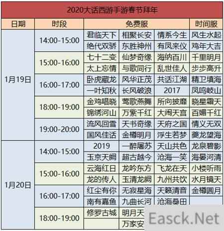 GM巡游时间: 1月19日-1月20日 各服务器20-60分钟,具体服务器时间安排如下:
