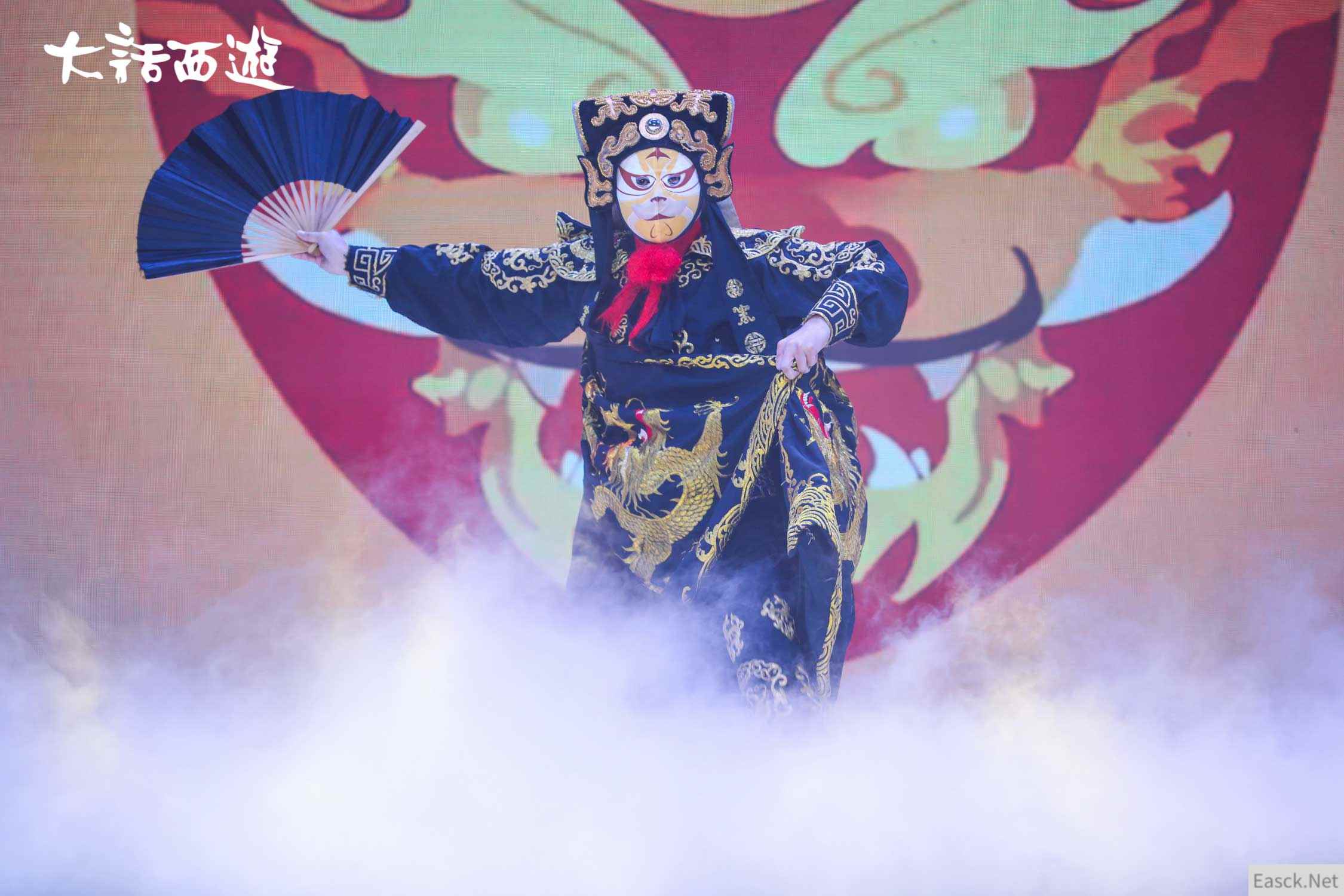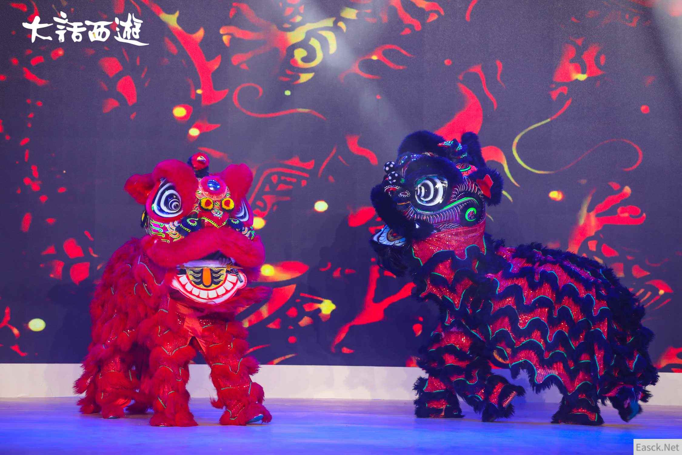 在这场“大话春晚”上,充满国风特色的节目也少不了!苏州剑舞、天津相声、川剧变脸、功夫街舞,新潮国风侠气冲天!川剧变脸《侠气冲霄》中,有特别制作的大话元素脸谱你发现了吗?瞧!咱们的鸡驴大神、虎头怪也客串其中露了一回脸!