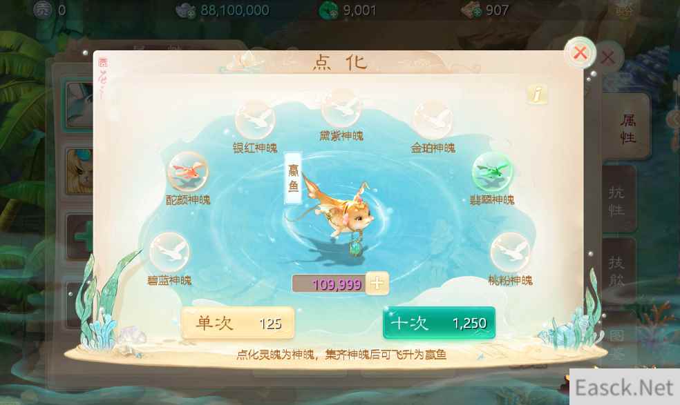 玩家通过寻妖袋捕捉、日常活跃度奖励等多种方式都能获得轻松获得飞鱼灵魄,用来对飞鱼进行培养,收集一定数量的飞鱼灵魄可点化为神魄,使用可变色神魄还可以对飞鱼进行染色。当玩家收集完毕相对应的几种神魄后,就可前往灵兽仙处将飞鱼飞升为蠃鱼!