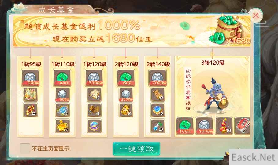 成长基金!十倍奖励伴你行 昔日老友回归,福利好礼天降!在此次“鱼你再聚”2020回归玩家活动中,大话手游特别推出了一系列全新的成长福利,助力回归玩家和初入江湖的新手玩家能够更快地成长,获得更好的游戏体验。其中,全新“成长基金”礼包系统就是面向鼠年春节后开服的所有新服定制的一款特殊福利,高达十倍的回馈力度更是令人倍感惊喜! 凡在2020年1月25日(农历春节)之后新开的道具服新服玩家都能够享受到这一福利。在今日活动开启后,醉蓬莱、万家灯火、醉花间、天道酬勤和长歌当啸五个服务器的玩家将能率先享受到这一福利,玩家在“奖励”界面可找到“成长基金”入口。玩家仅需花费168元购买基金,之后将立返1680仙玉,还能在角色等级达到不同目标领取不同的超值奖励与特权!
