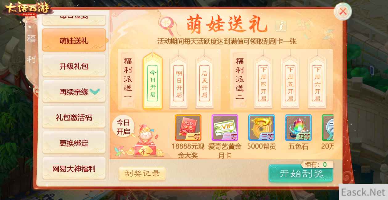 3月25日-4月3日期间,侠士每日获得满活跃度就可以参与“萌娃驾到”刮奖活动,使用刮刮卡有机会获得18888元现金大奖、iphone12、70寸智能电视以及各种游戏道具!