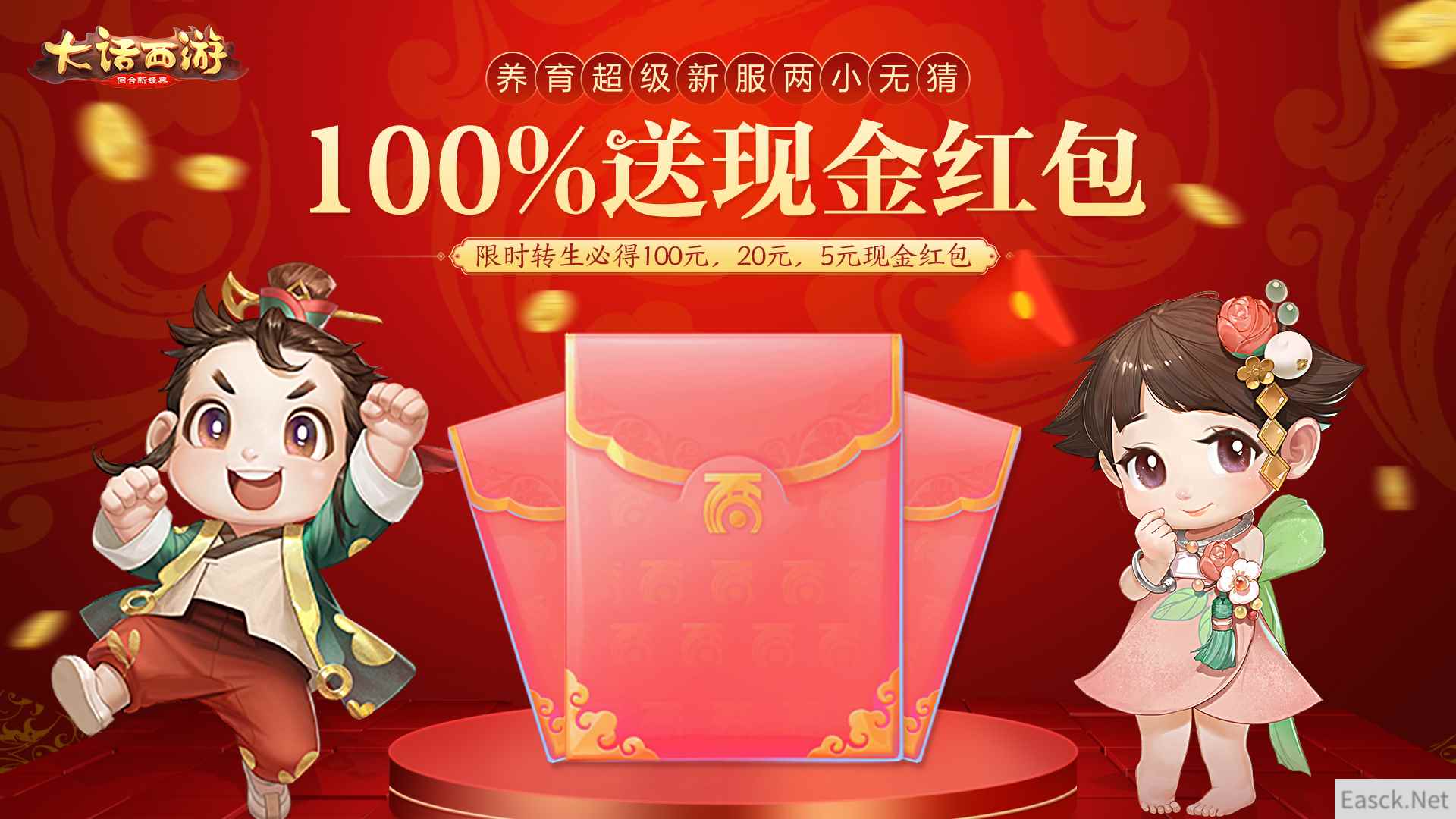 为了庆祝《大话西游》手游全新养育资料片“两小无猜”正式开启,超级新服“两小无猜”今日正式开启。玩家参与新服转生活动100%送现金红包,还有超级新服专享庆典活动,超多实物奖励豪气相送!