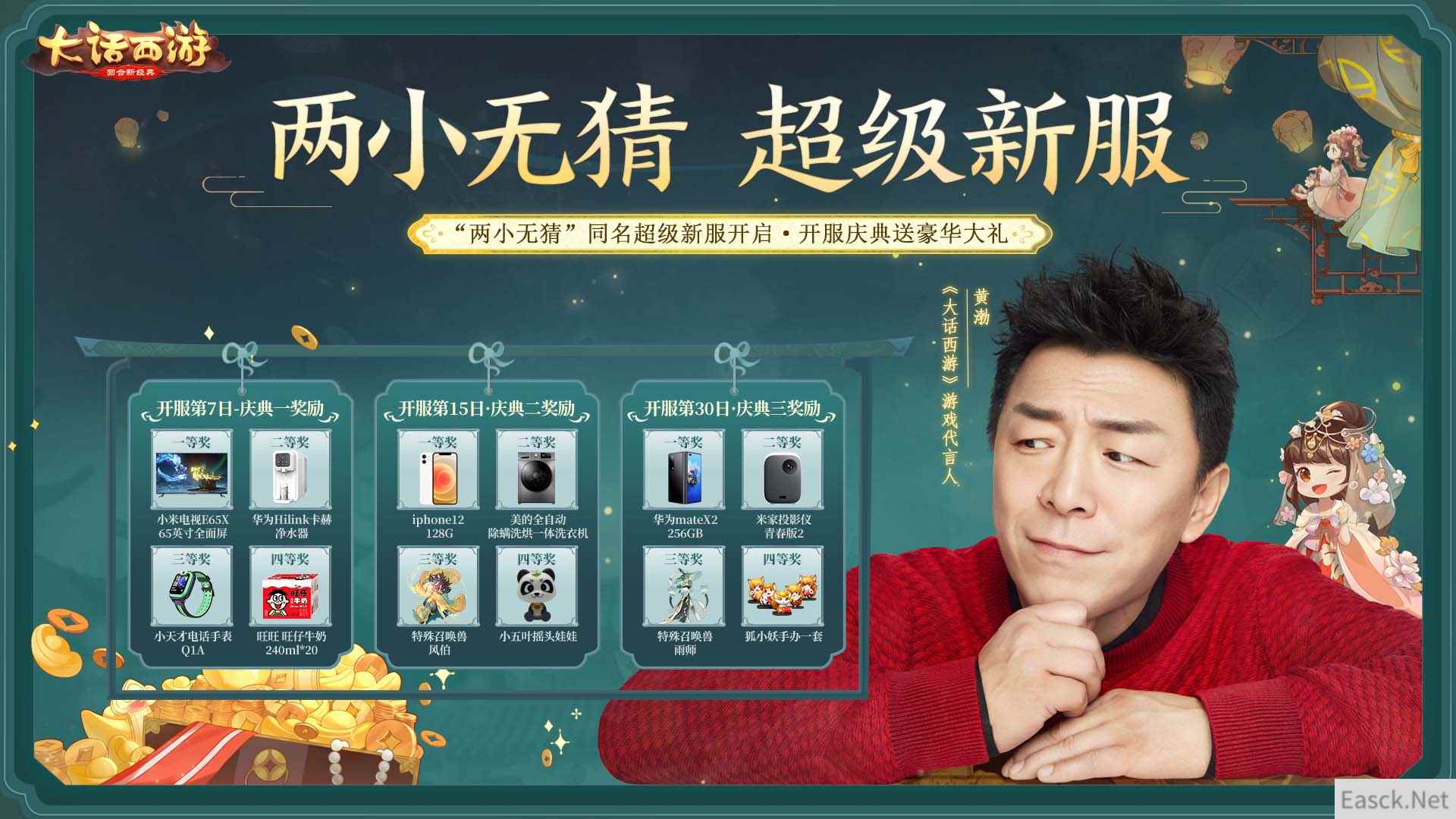 此外,在超级新服正式上线后,还有3场专属开服庆典活动降临。在“两小无猜”服务器开启后的第7天、第15天以及第30天,将有三场抽奖活动降临,玩家参与活动就有机会获得iPhone 12、华为MateX2手机、小米电视E65X英寸 全面屏、华为HiLink卡赫净水器家用直饮净水机、美的全自动洗烘一体洗衣机、米家投影仪青春版2等实物奖励,大话西游狐小妖手办等精美周边,以及召唤兽风伯雨师等珍稀召唤兽! 福利活动进行中 海量大奖等你赢 除了超级新服中将有各种专属活动降临之外,“两小无猜”资料片上线后,一系列奖励满满的福利活动也正在等待侠士们前去参与。 3月25日-4月8日期间,侠士分享“初遇好礼”活动页面并集赞,就能获得更换孩童形象和幸运大抽奖的机会,6666元现金红包、iphone12 128G、小米电视E65X 65寸全面屏、大话纯金金条、美的双开门电冰箱等豪华实物大奖和海量珍稀游戏道具等你赢回家!