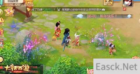 此外,玩家参与“新春宝图任务”(双倍的游戏奖励)、“新春捉迷藏任务”(冰天雪地场景)等多重春节玩法,也有丰厚游戏福利发放哦! 走亲访友贺鸡年 新春祝福活动来袭 作为极具新年气氛的春节特色玩法,“走亲访友”、“藏宝迎宾”、“烟花献福”三大新春祝福活动也同时开启。玩家体验埋宝箱,邀请好友寻宝的别样乐趣,购买喜庆缤纷的烟花邀好友观赏,赠予好友新年红包送上温馨的鸡年祝福,多重玩法内容伴玩家共贺缤纷鸡年!