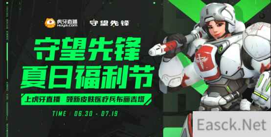 7月19 -21日期间,在“哔哩哔哩守望先锋赛事”直播间观看《守望先锋联赛》“季中争霸赛”满两小时,同样可获得“医疗兵布丽吉塔”皮肤奖励。 虎牙直播 (6月30日10:00活动开启)