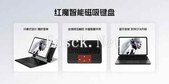 红魔电竞平板Pro魔力触控笔,支持NFC磁吸闪充,拥有15天超长待机。还有智能磁吸键盘,一吸即连,支持全域按压触控和160度支撑角度,让平板秒变笔记本电脑,绝对是你办公学习的好帮手。