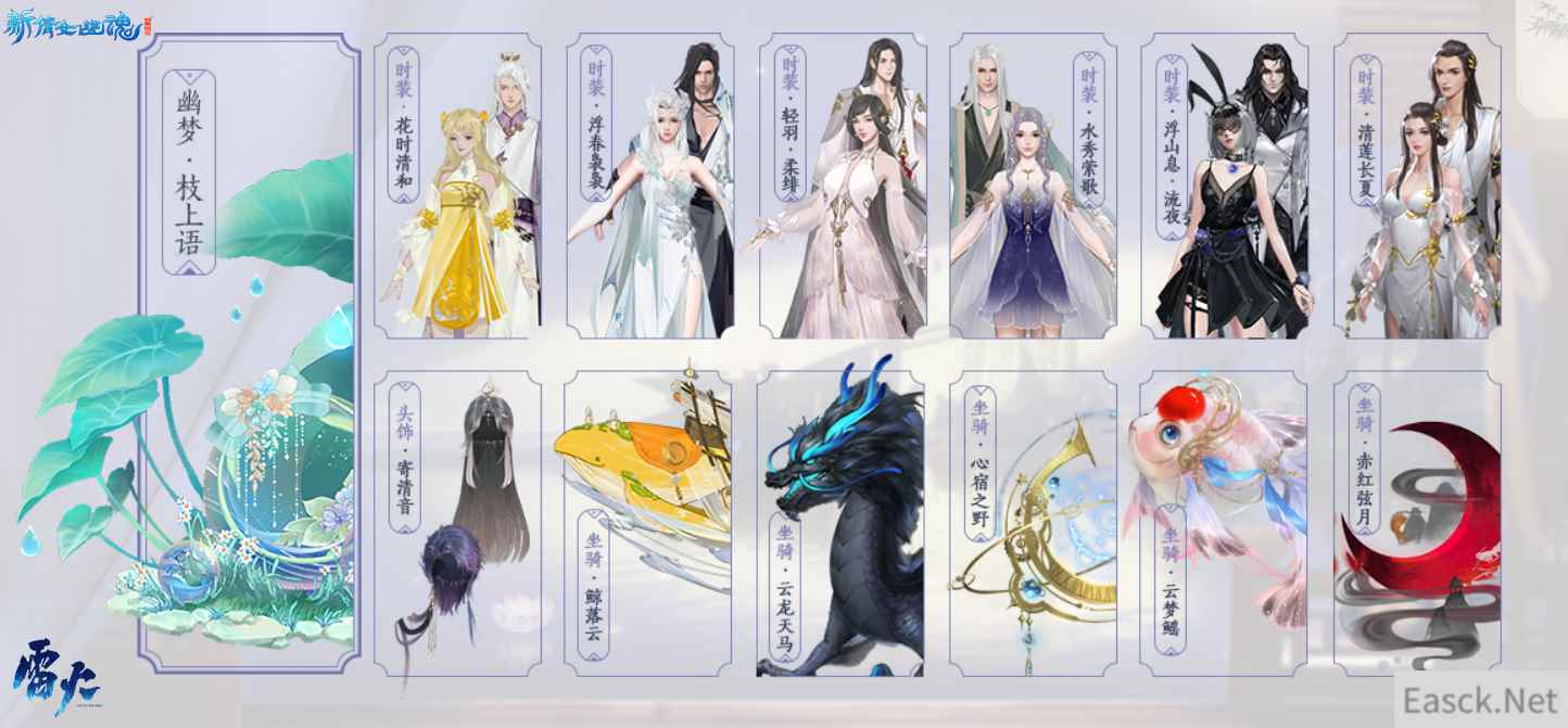 佳人齐聚,报名推荐嘉赏好礼 欢迎诸位少侠报名参与幽梦天使,大方展现自己的风貌,上传美照一展仙姿佚貌。即日起至6月16日23:59,≥50级的女性玩家可在主城寻找花渐隐完成报名,也可通过新倩女互通版的官网专题页面或在网易大神APP发送带有#2021幽梦天使#话题的相关动态,并附带至少1张照片进行报名。 此外,少侠们还可推荐好友参赛,若推荐的好友报名成功且通过审核,前五名推荐者可获得好友推荐礼。帮会帮主也可推荐帮内成员参与海选赛,若该成员最终获得前十名,帮主可领取帮会推荐好礼! 凡报名参加幽梦天使的少侠,通过审核并成功展示在官网之后,即可轻松获得时装花时清和。在海选赛期间,若少侠累计获得票数≥180票,还可额外获得坐骑云龙天马、时装佳期梦、全新家园装饰物“幽梦·枝上语”和精美称号等优胜奖励。