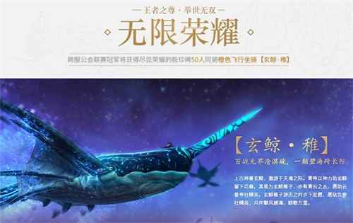 本服公会联赛经过数百场的争锋逐渐显露出大一批所向披靡的王者公会战队,他们骁勇善战,实力超群,在本服已难遇敌手。帝社特此举办第七届跨服公会联赛,挑选各服务器英勇的公会战队代表本服务器参战角逐,进行一场全云垂的巅峰对决,谁,才是真正的王者公会! 冠军公会还将获得尽显荣耀的极珍稀50人同骑橙色飞行坐骑【玄鲸·稚】!
