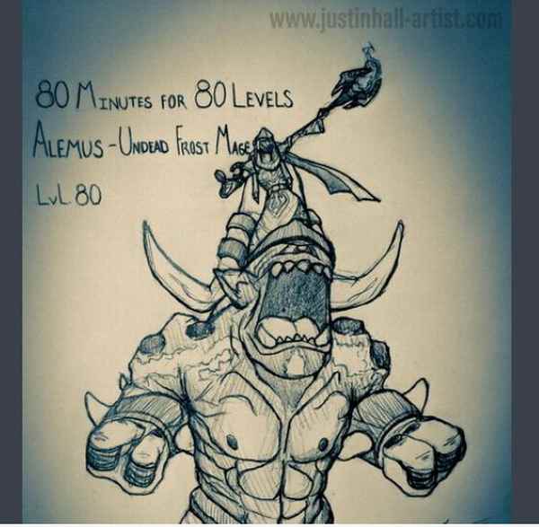 国外有个玩家叫Justin Hall,他很喜欢玩《魔兽世界》,而他本身是个画家,所以用画笔记录了自己的亡灵法师从1级开始的升级历程,并且采用了素描纯手绘的方式,创意十分有趣。