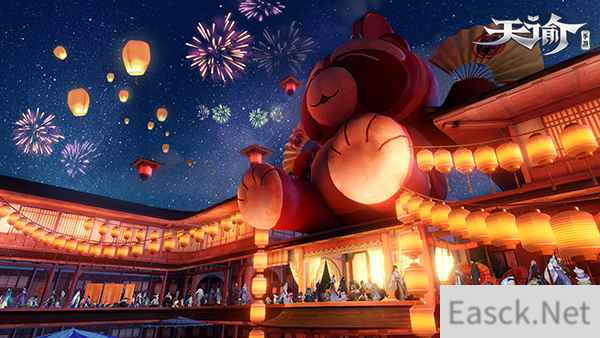 【欢乐时光开启!】 灵界盛会 其乐无穷 在云垂大陆上,除了人类,还生活着各种各样的种族。依海而生的汐族能歌善舞,避世而居的仙菇族软萌可爱。而喜欢玩乐的元狸族,则将自己的这一天性发挥了到了极致,甚至建造了一座世外幻境——妖精游园会,期待着冒险家们来到此处,一起开启欢乐时光。 手持折扇的巨大狸猫端坐正中,橙红色的灯笼和天空中绽放的七色焰火,更是将热闹的气氛推向高潮。而南来北往的冒险家们也正聚集于此,希望能够在游园会中拔得头筹。