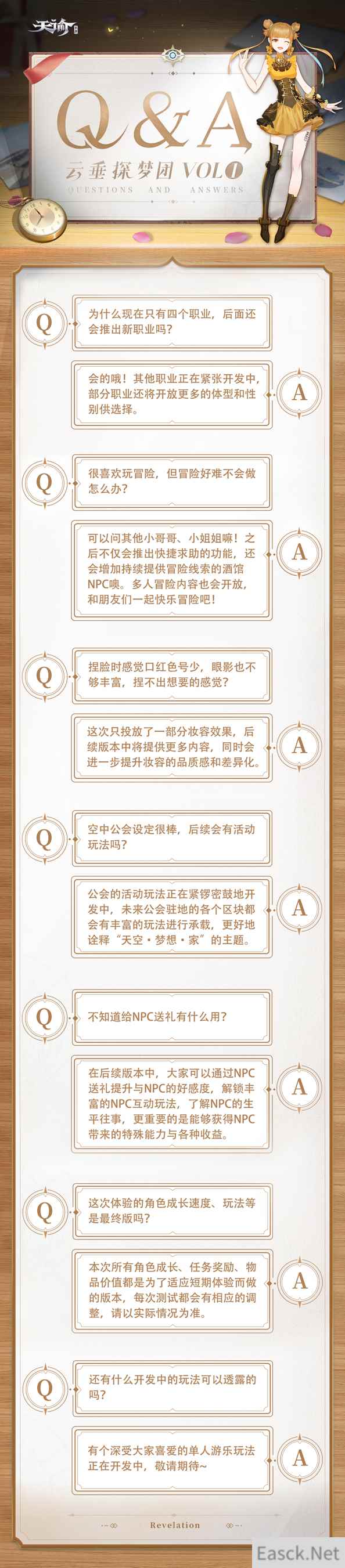 探梦团,下次见! 疑惑多多?策划在线解答 短短的三天时间中,冒险家们不仅破解了玩法中的小谜题,也围绕职业、捏脸、空中公会等提出了许多问题和建议。对此,《天谕》手游策划组成员特意针对大家的困惑提交了一份答卷。不知道各位冒险家,对下面这些回答是否满意呢?